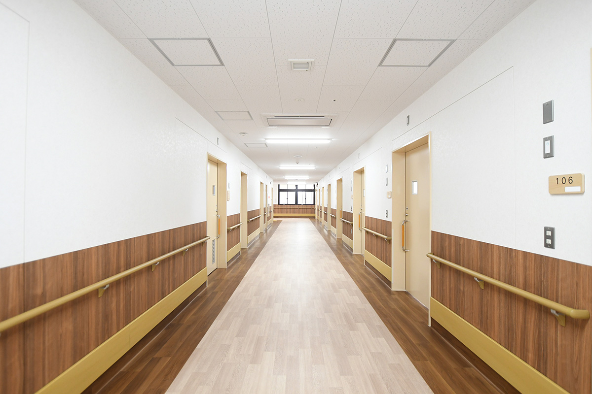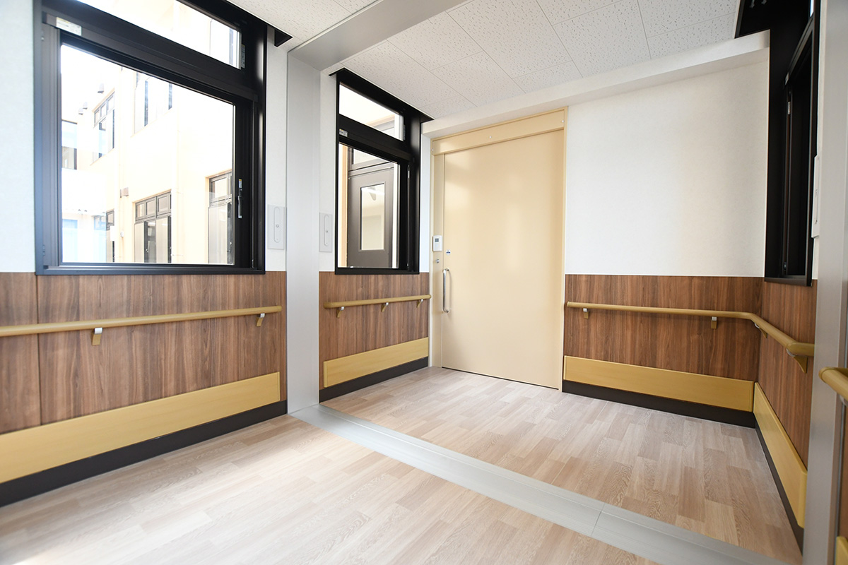 | 工事概要 | サッシ交換 エアコン交換及び増設 内装改修 ナースコール及び器盤交換 ガラス交換(真空層ガラスに) 浴室及びトイレ改修 ボイラー交換(重油→LPG) LPGタンク増設 消火水槽交換 各部老朽化配管交換 |